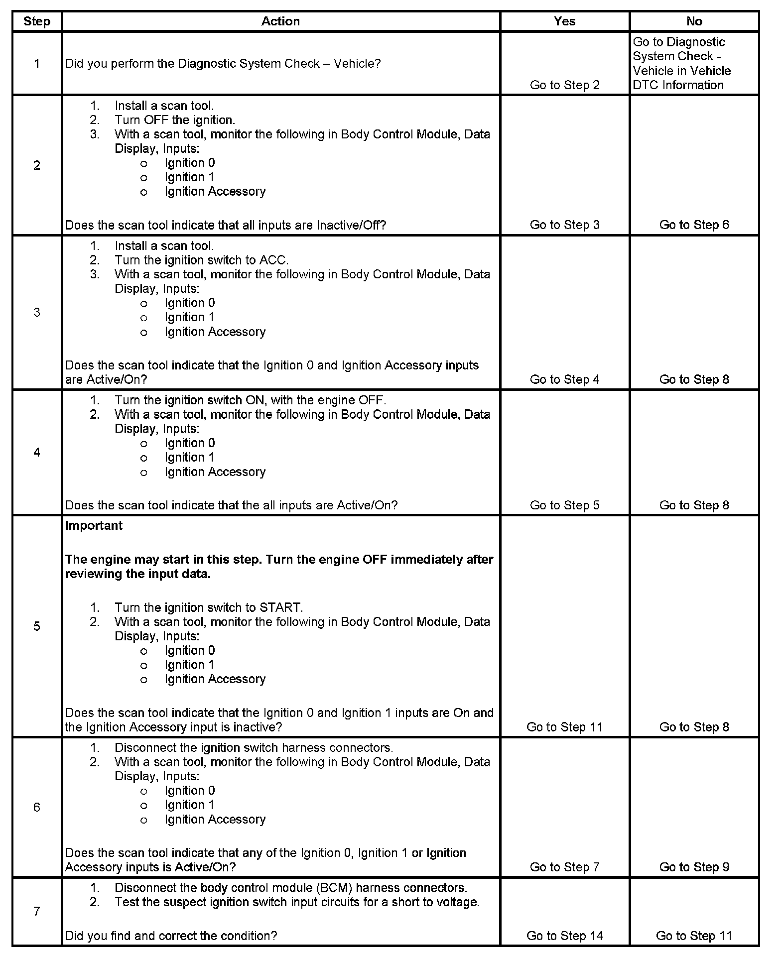 The body control module (BCM) is the power mode master responsible for sending ignition switch position information on the class 2 serial data link (SDL). The BCM monitors 3 discrete wires from the ignition switch contacts and the engine run flag (ERF) in order to determine the present power mode. The BCM communicates this power mode information to all class 2 modules on the class 2 SDL. The following table represents correct BCM power mode data: