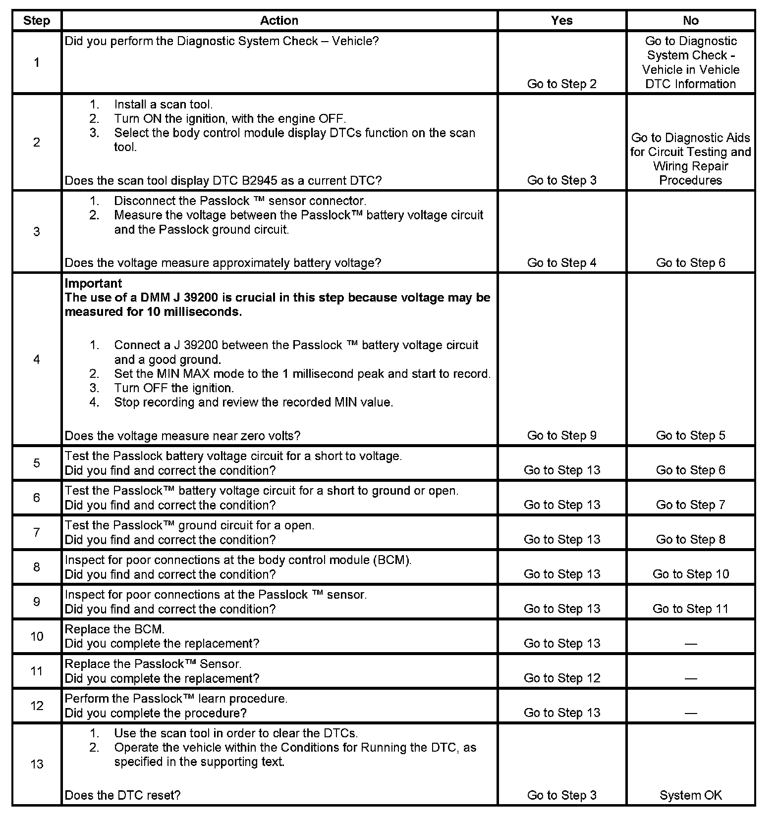 - When a short to ground, battery or open is no longer present on the Passlock sensor power circuit, the ignition switch must be cycled from OFF to ON before this DTC can change from a current DTC to a history DTC.