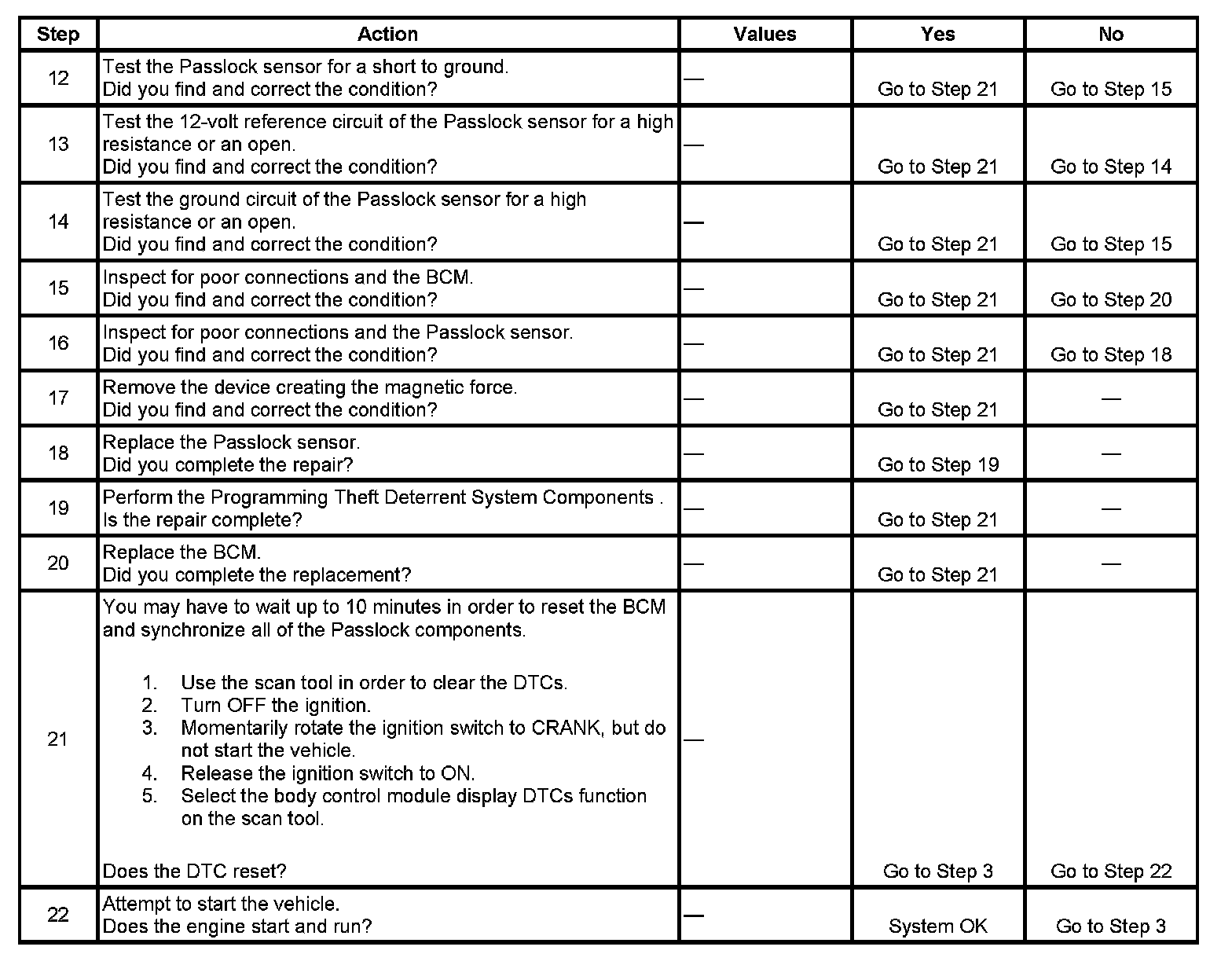 12. This step tests for a short to ground in the Passlock signal circuit.