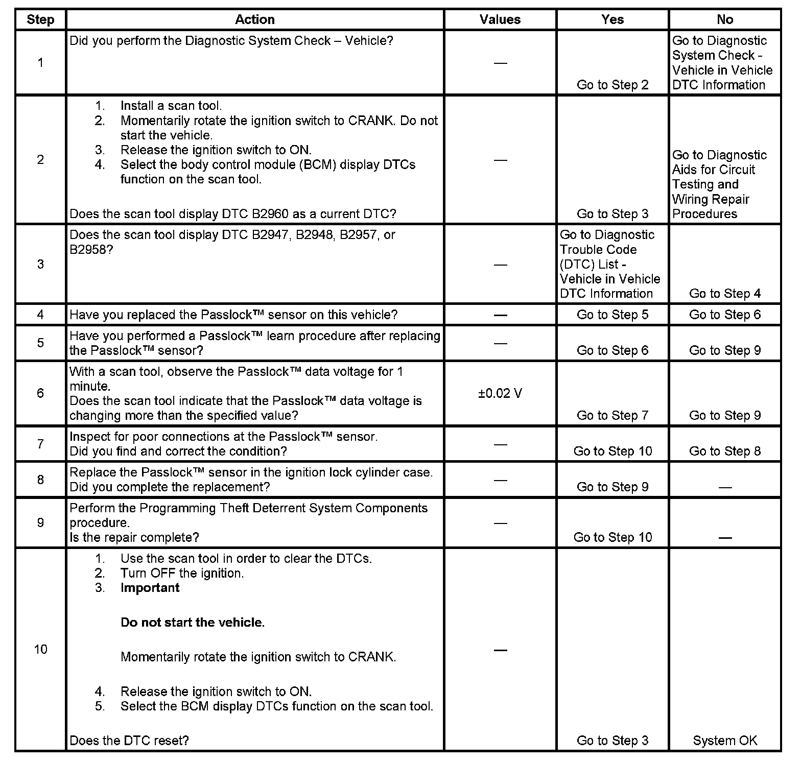 - Use a scan tool in order to inspect the Passlock(TM) data voltage and the Passlock(TM) code.