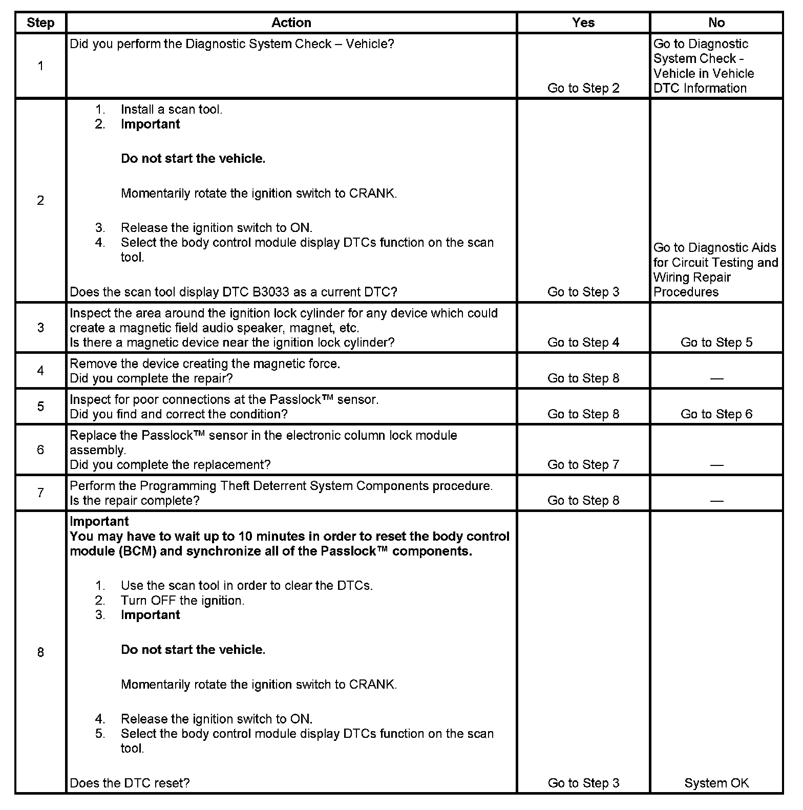 The number below refers to the step number on the diagnostic table: