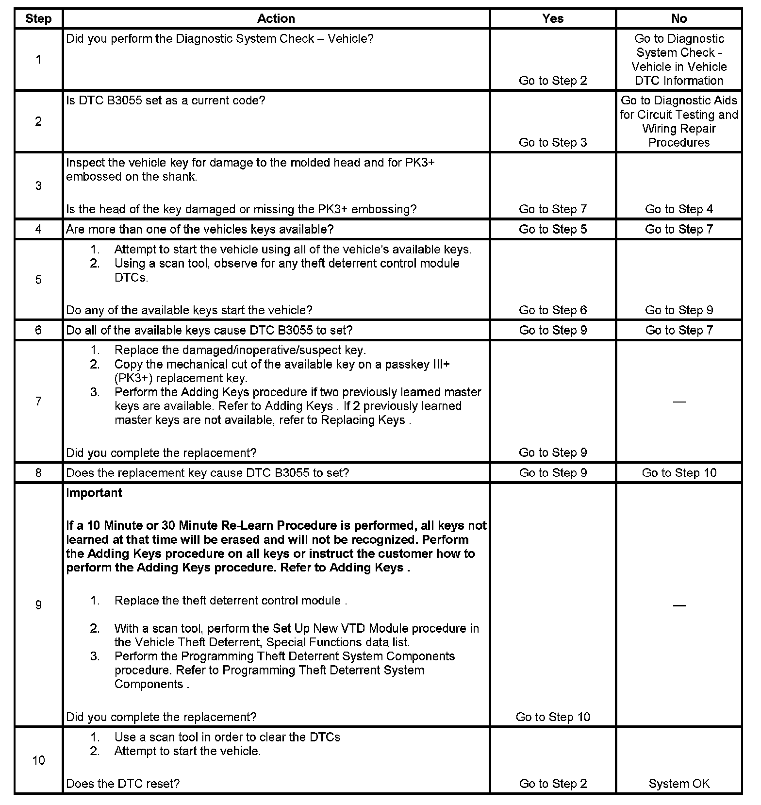 7. If a new key must be tried, the key must have the proper mechanical cut and the theft deterrent control module must "learn" the transponder value.