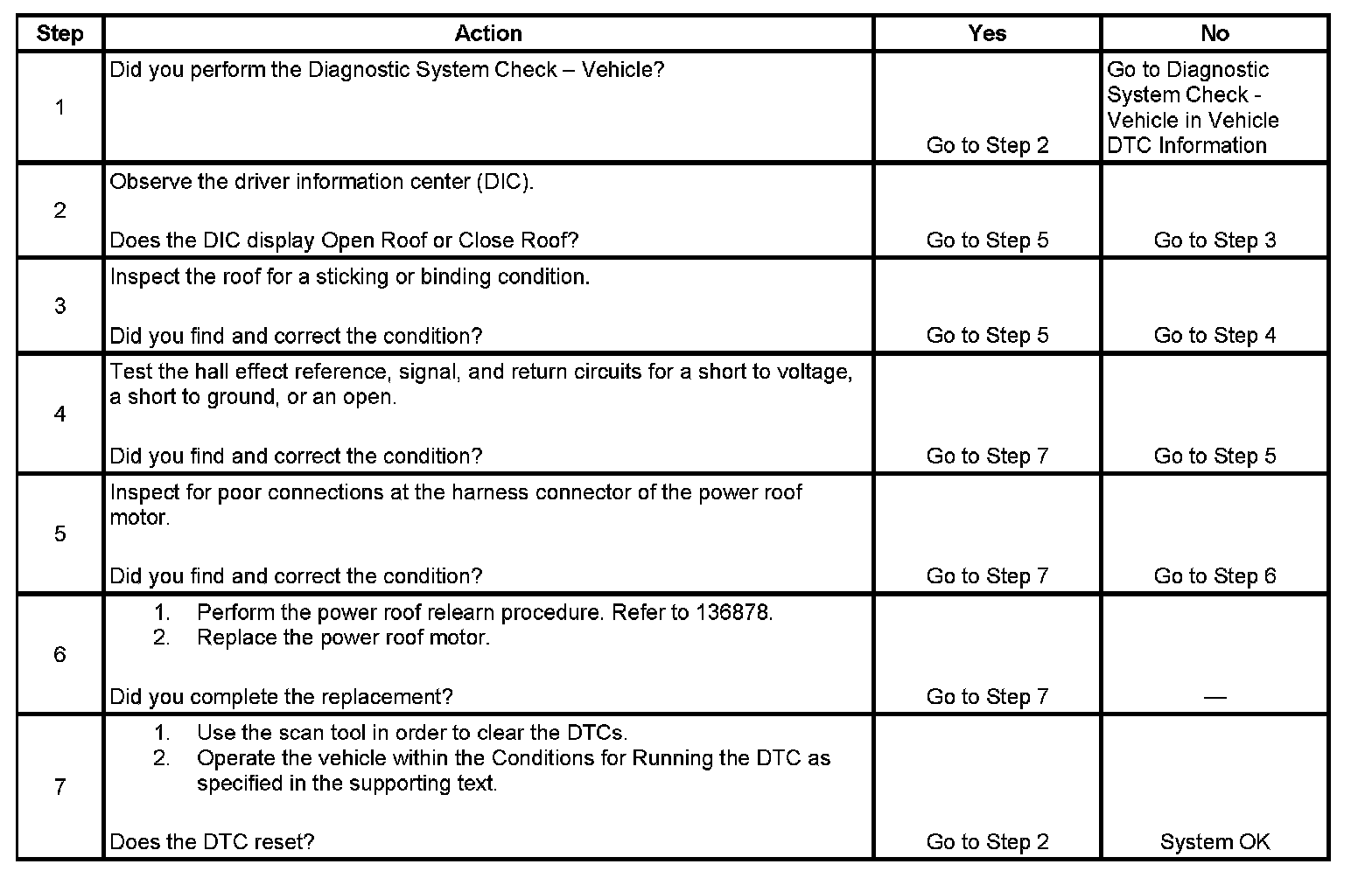 - The roof module no longer detects a current DTC B3972 in Sunroof/Moonroof module memory.