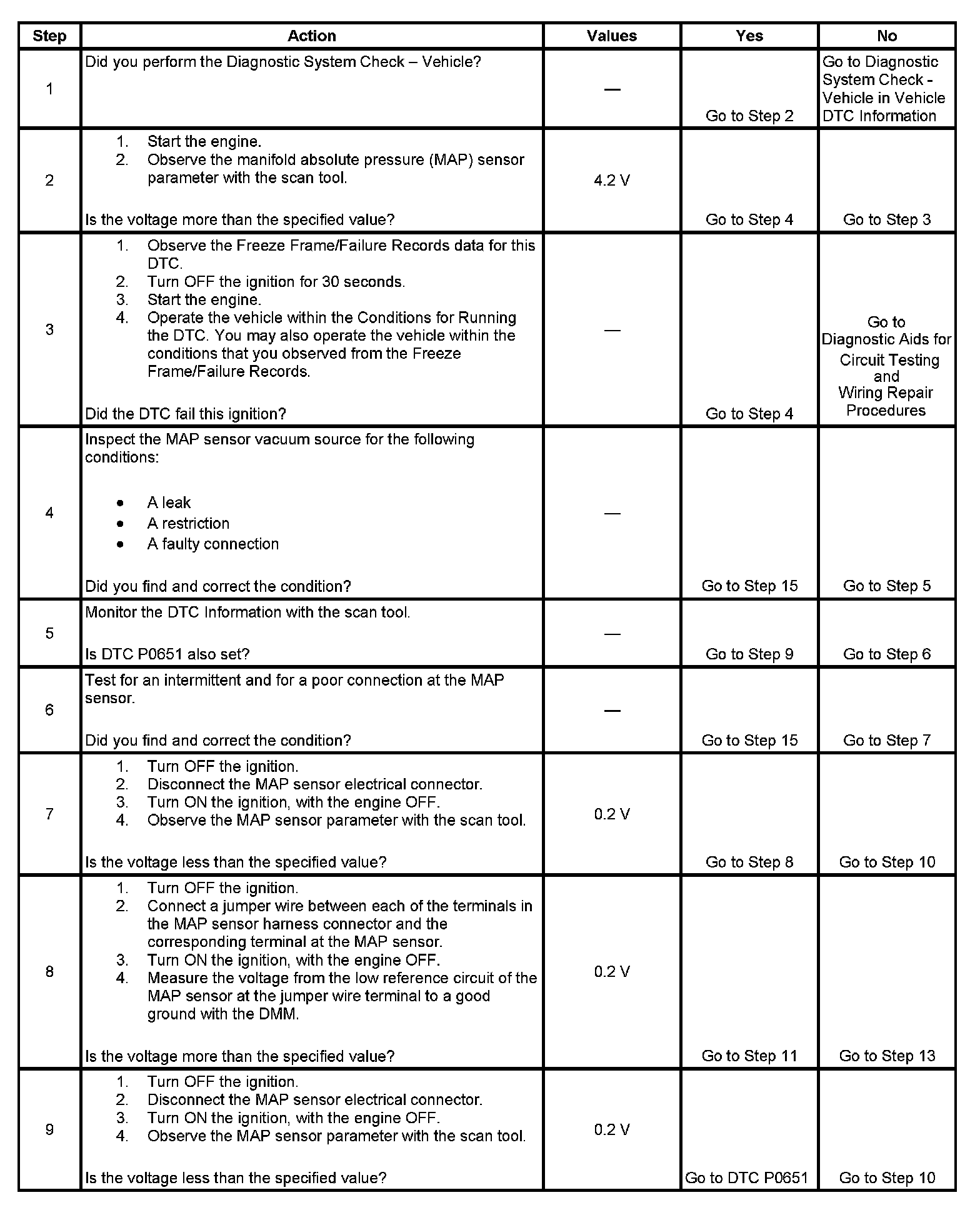 The PCM detects that the MAP sensor voltage is more than 4.2 volts for more than 1 second.