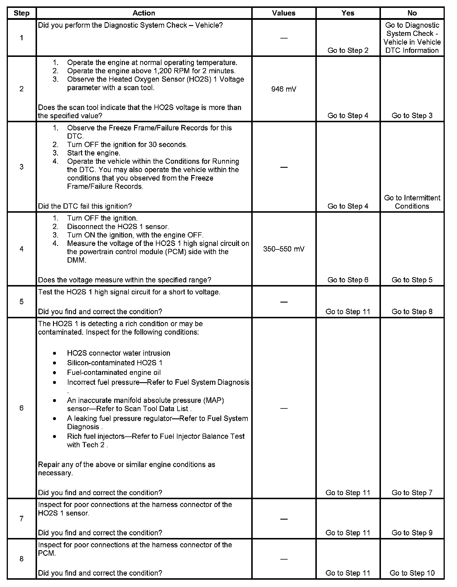 - The PCM detects that the HO2S 1 parameter is more than 946 mV.