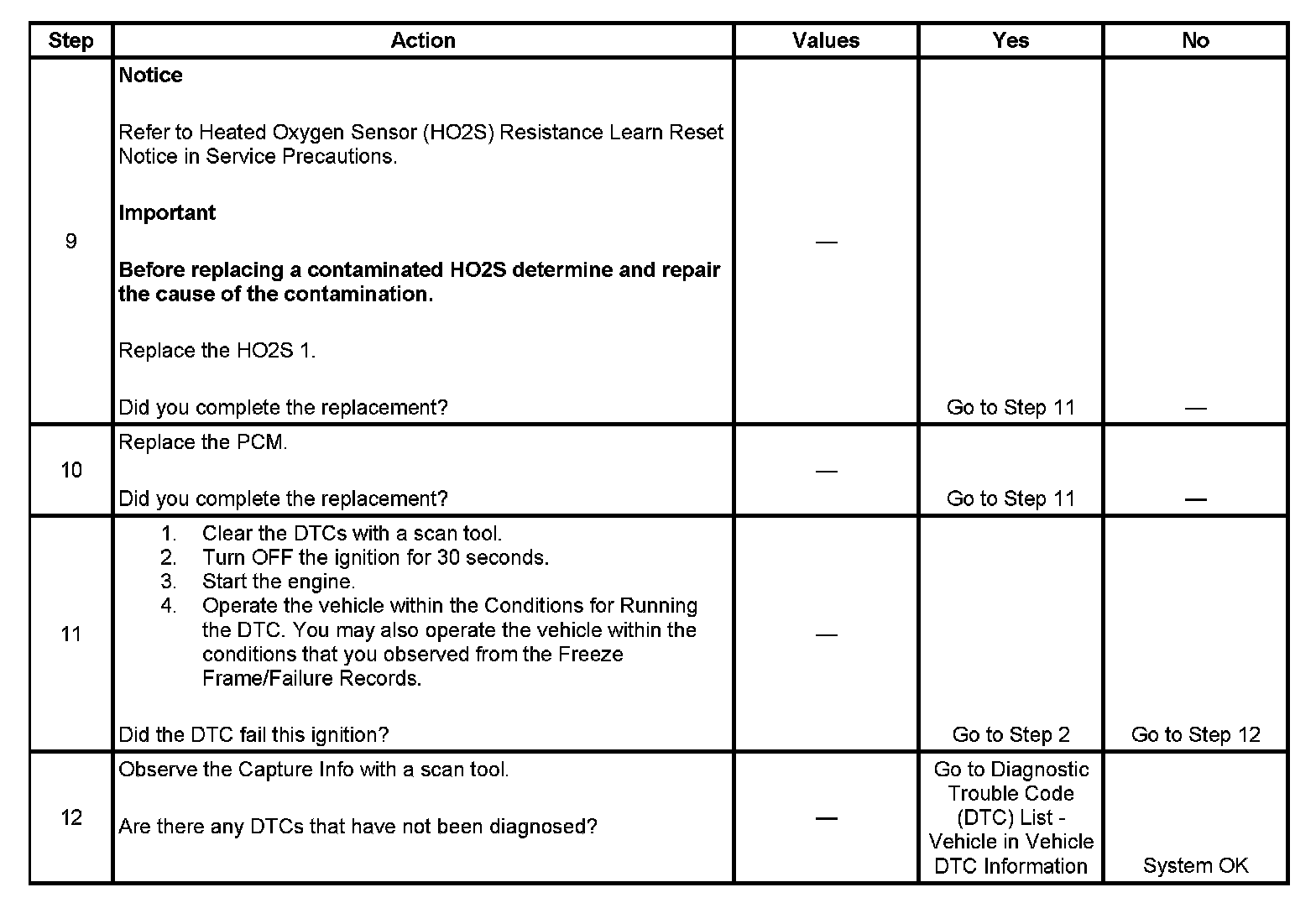 - A current DTC, Last Test Failed, clears when the diagnostic runs and passes.