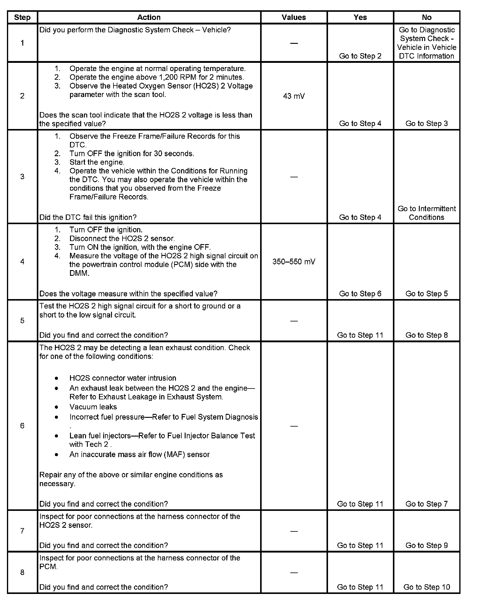 DTC P0137 HO2S Circuit Low Voltage Sensor 2