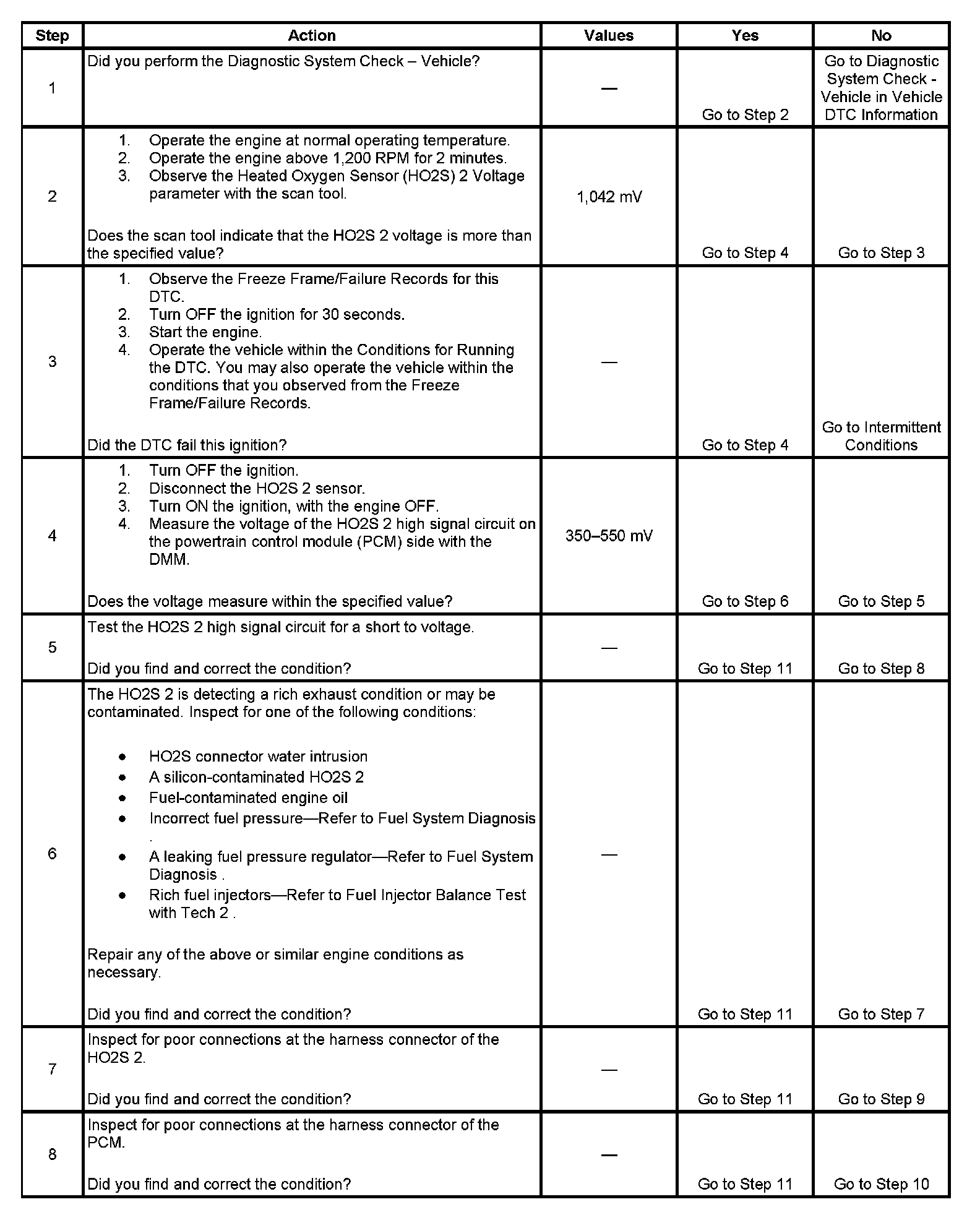 - The PCM detects that the HO2S 2 parameter is more than 1,042 mV.