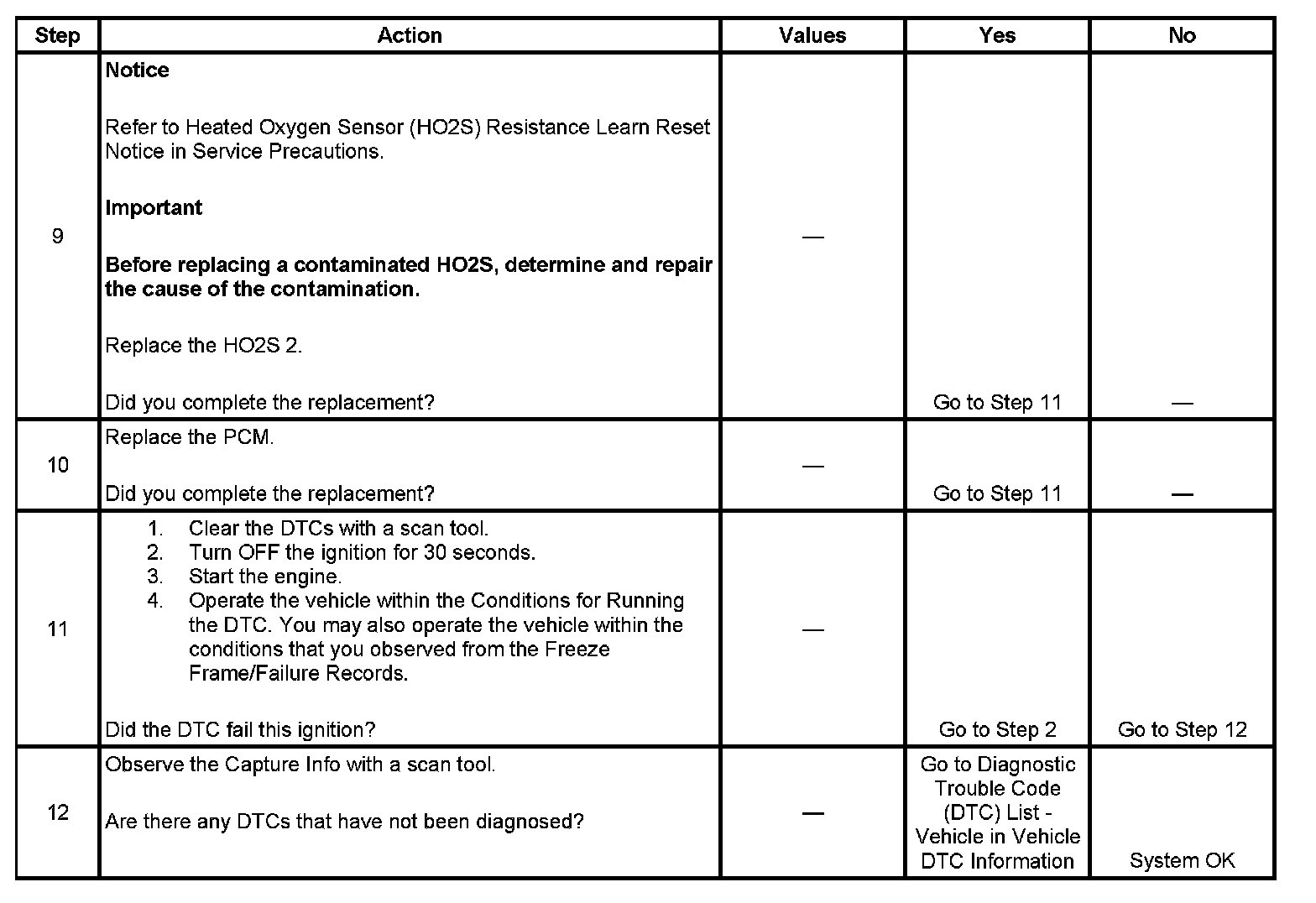 - A current DTC, Last Test Failed, clears when the diagnostic runs and passes.