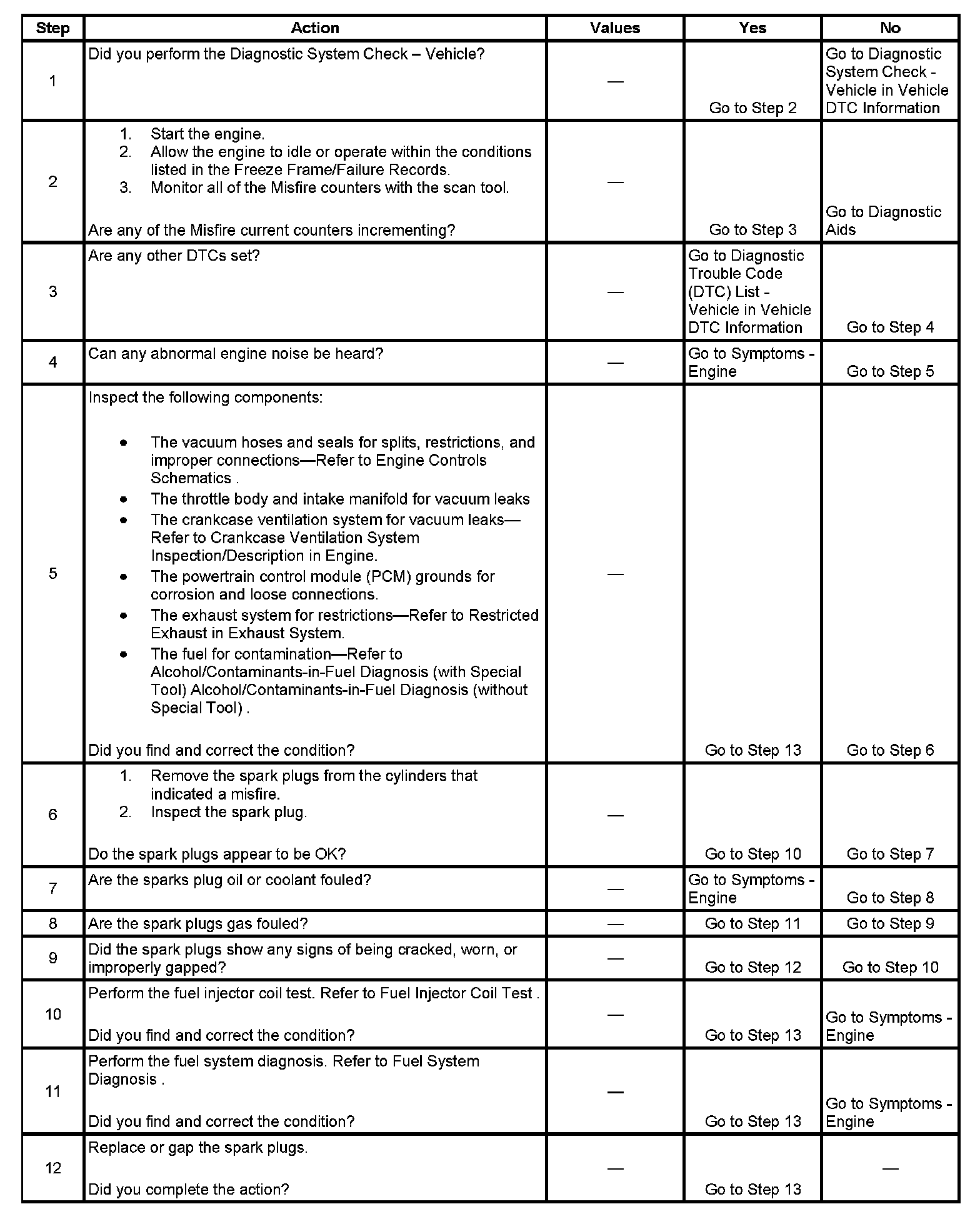 IMPORTANT: You must perform the CKP system variation learn procedure before proceeding with this diagnostic table. Refer to CKP System Variation Learn Procedure.