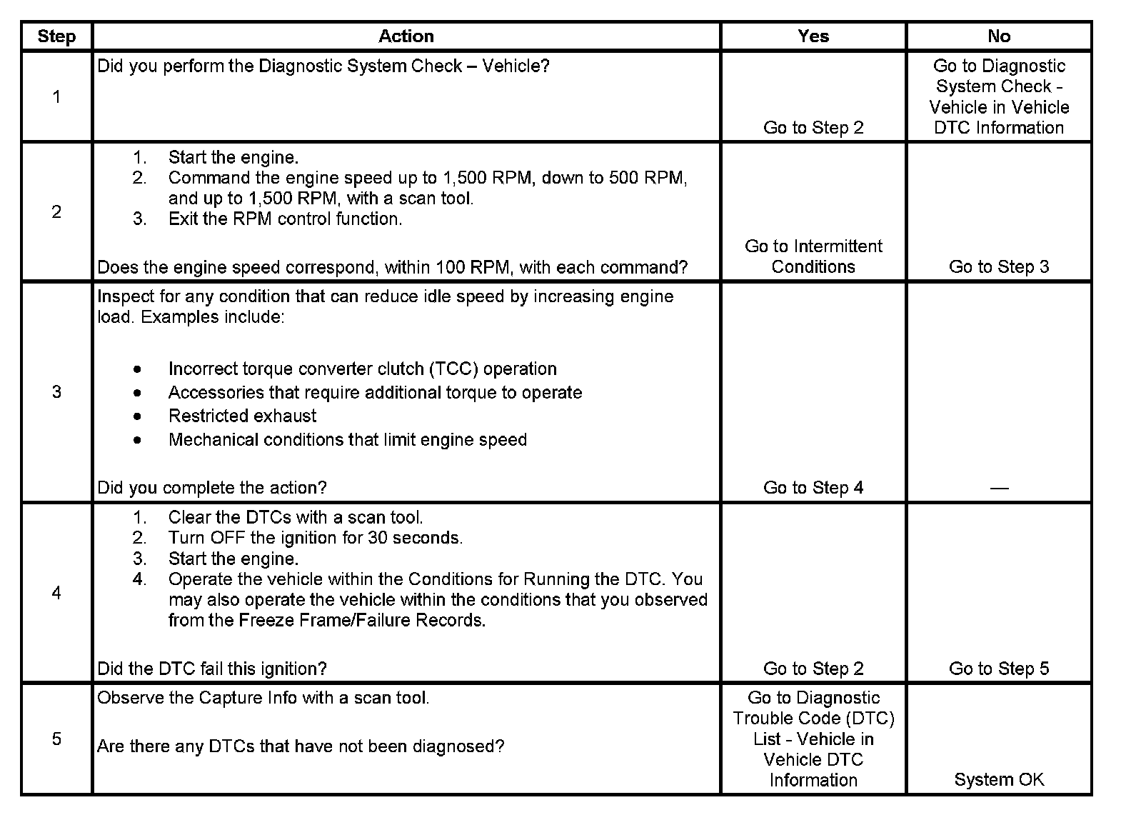 - The actual idle speed is approximately 150 RPM lower than the desired idle speed.