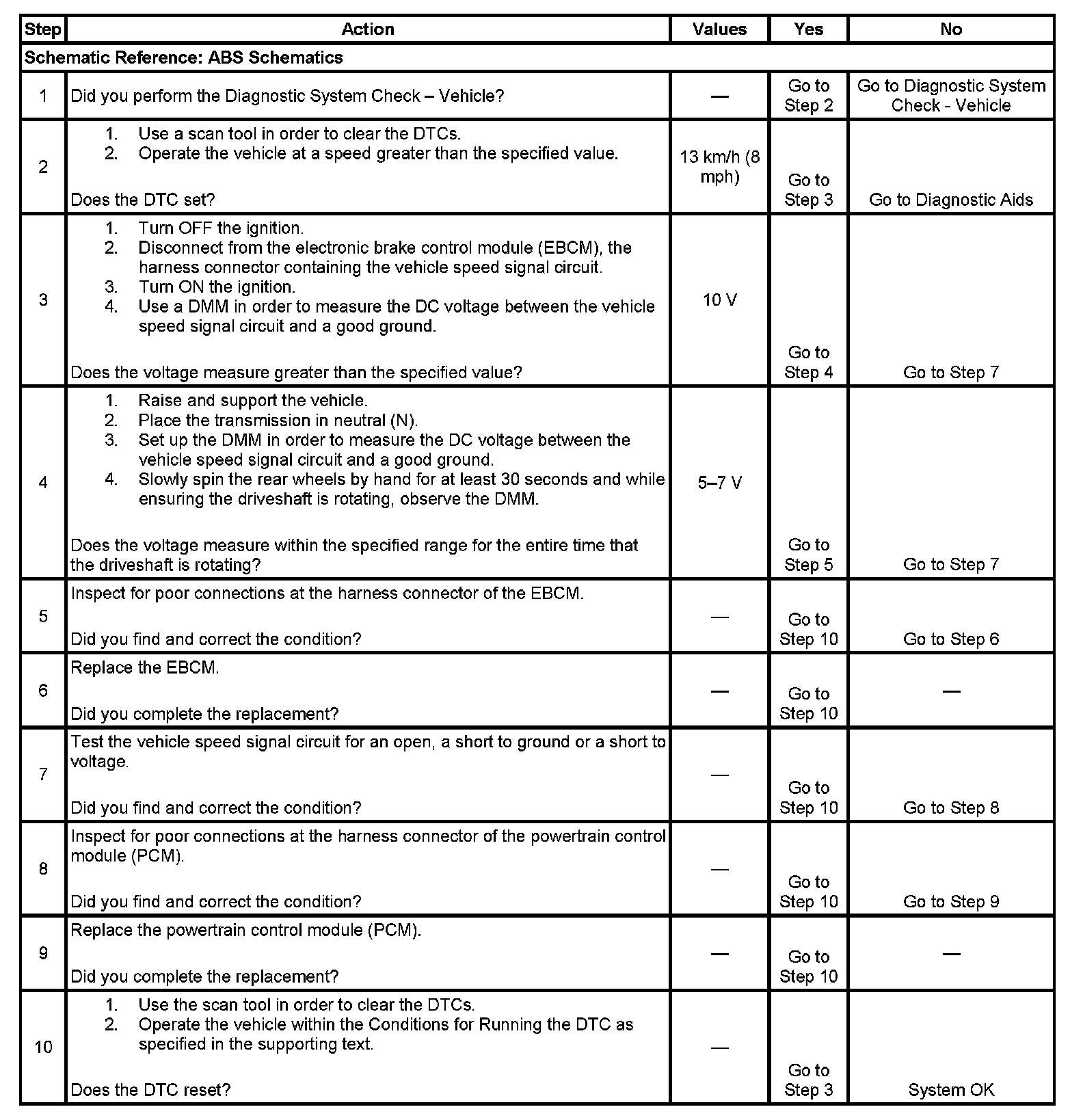 ^ The EBCM detects an open or shorted vehicle speed signal circuit for 500 milliseconds.