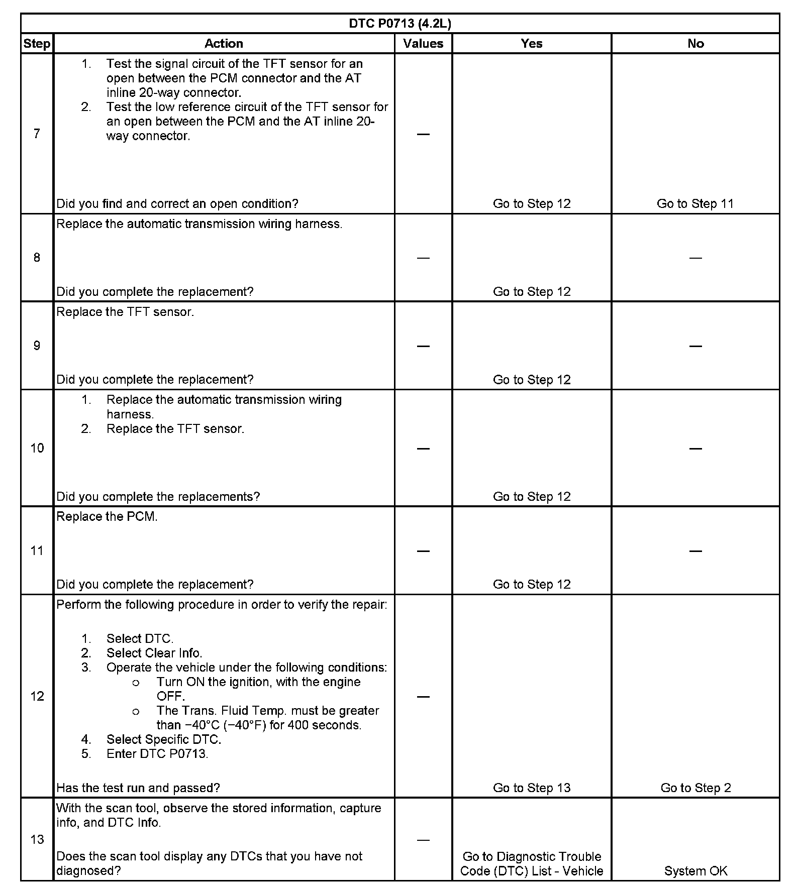 ^ The PCM stores DTC P0713 in PCM history.