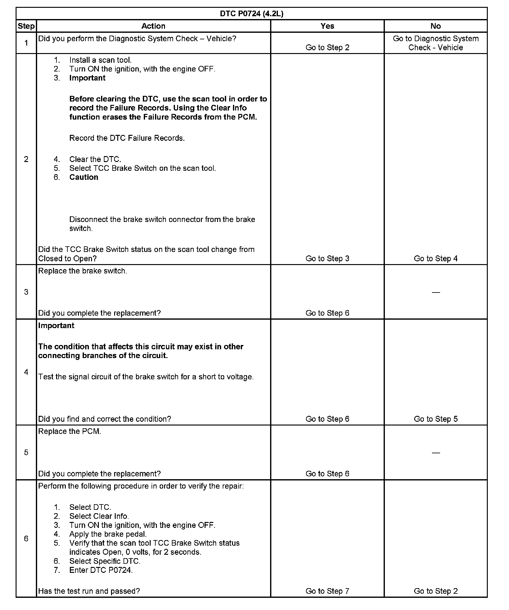 ^ The PCM stores DTC P0724 in PCM history.