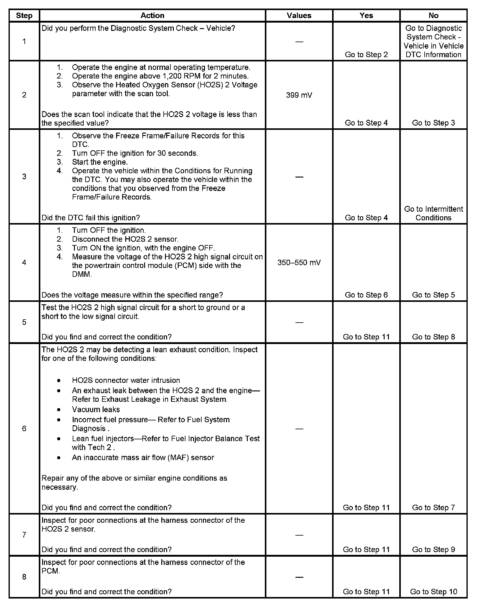 - The PCM detects that the HO2S 1 parameter is more than 700 mV and the HO2S 2 parameter is less than 399 mV.