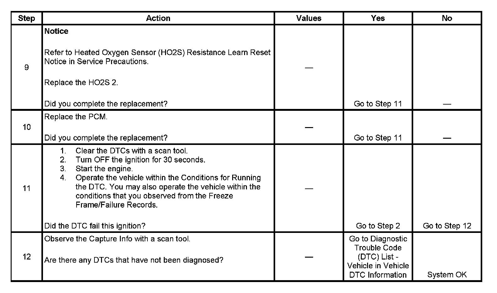 - A current DTC, Last Test Failed, clears when the diagnostic runs and passes.