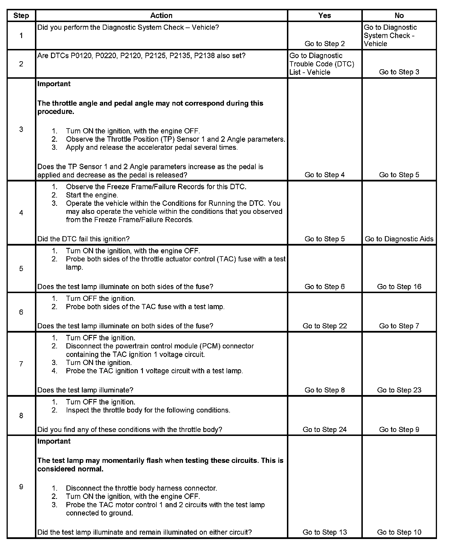 IMPORTANT: Operating the throttle blade with the Throttle Blade Control function of the scan tool may cause additional DTCs to set. Do not attempt to diagnose DTCs set during this function.