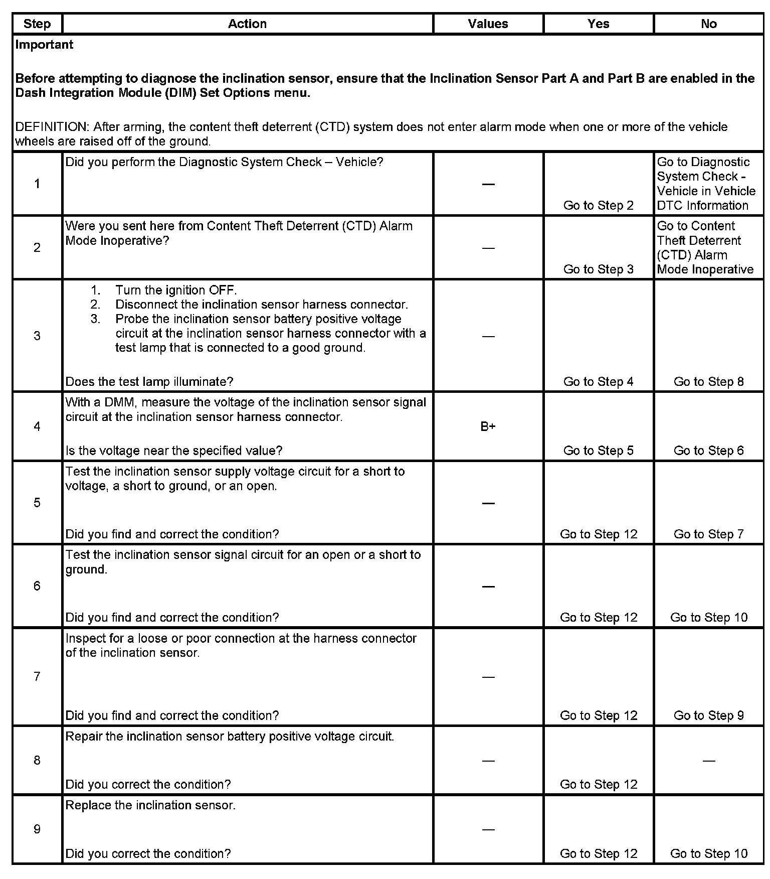 Inclination Sensor Inoperative - Theft Deterrent - Immobilizer - Some Export Vehicles