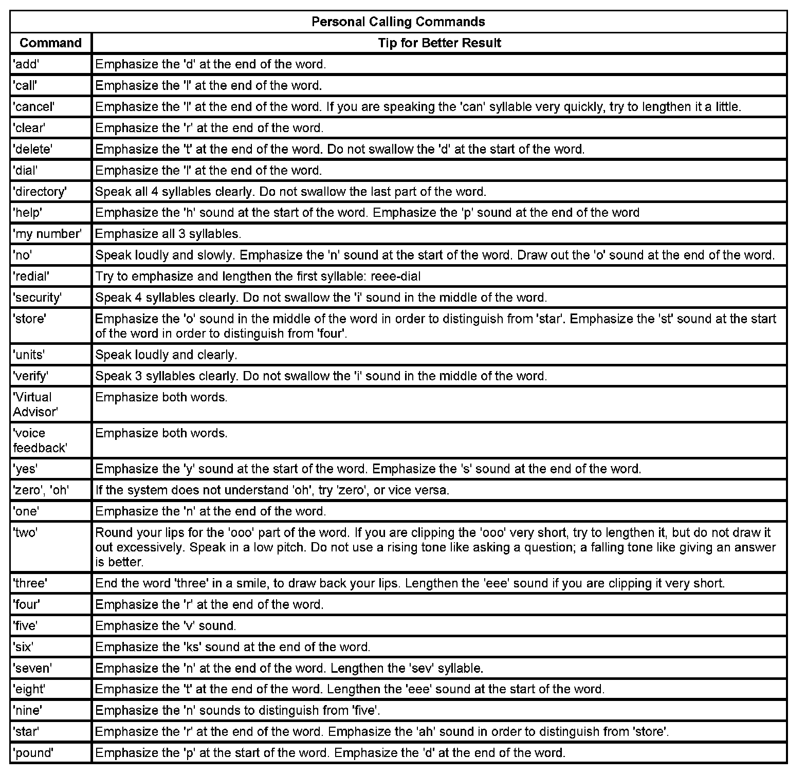 PERSONAL CALLING COMMANDS