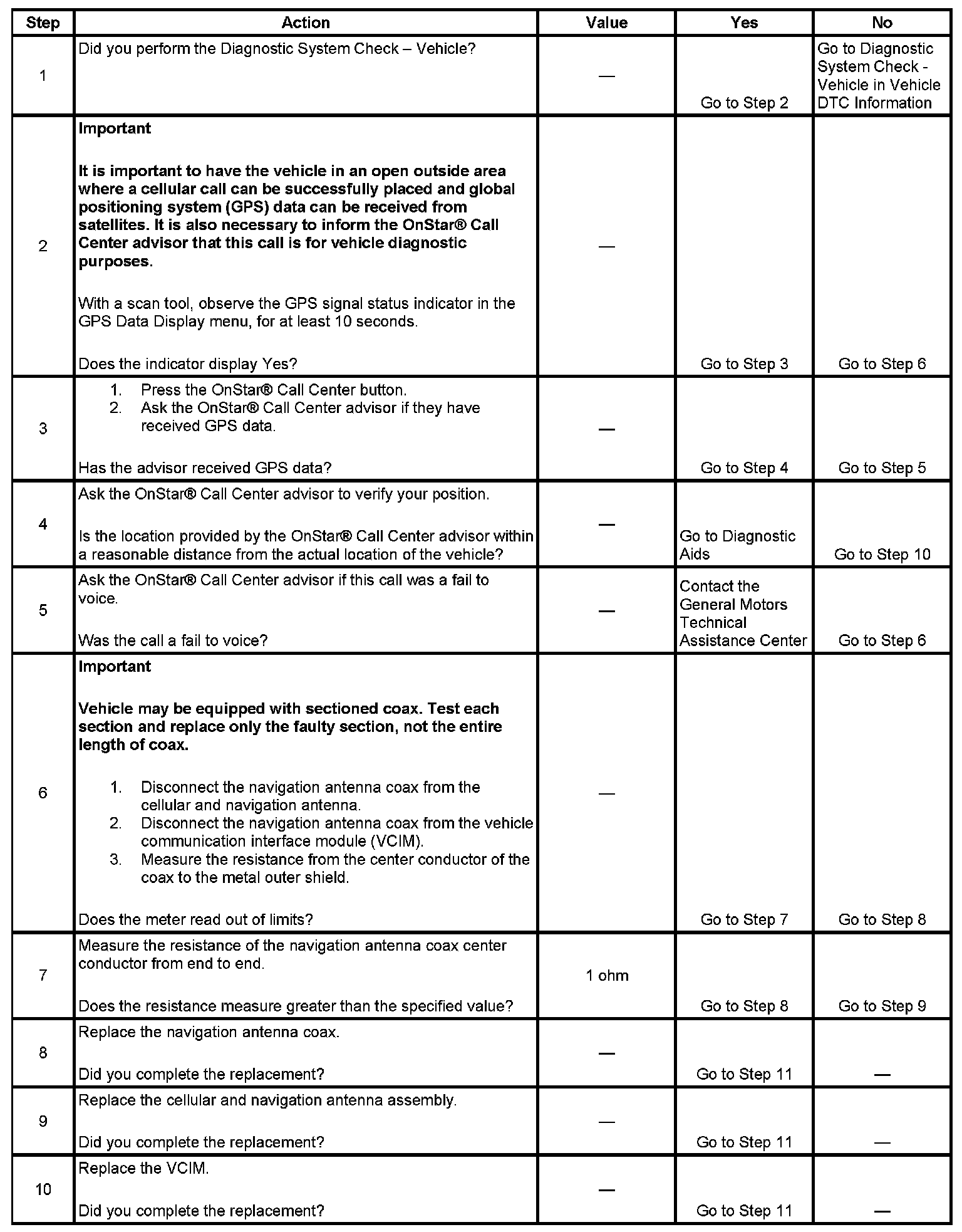- Inaccurate or aged GPS position concerns made by a customer which are no longer present may have been due to the temporary loss of GPS signal reception by the vehicle. Conditions such as driving through tunnels or parking structures while making an OnStar(R) keypress will restrict the navigation antenna from a clear view of the satellites in the sky and may have caused this temporary data loss.