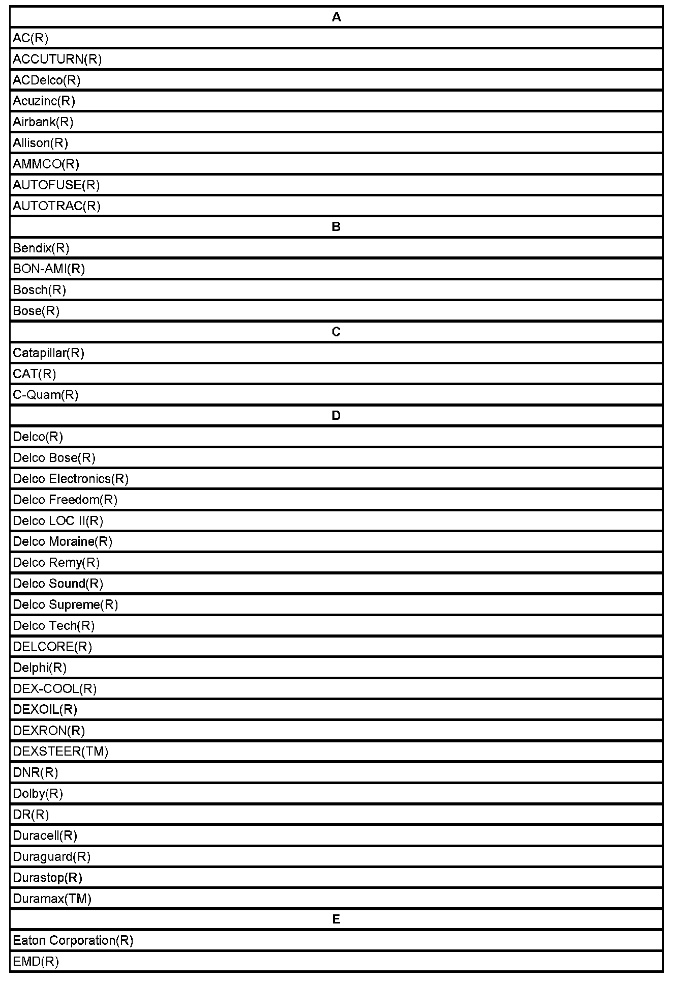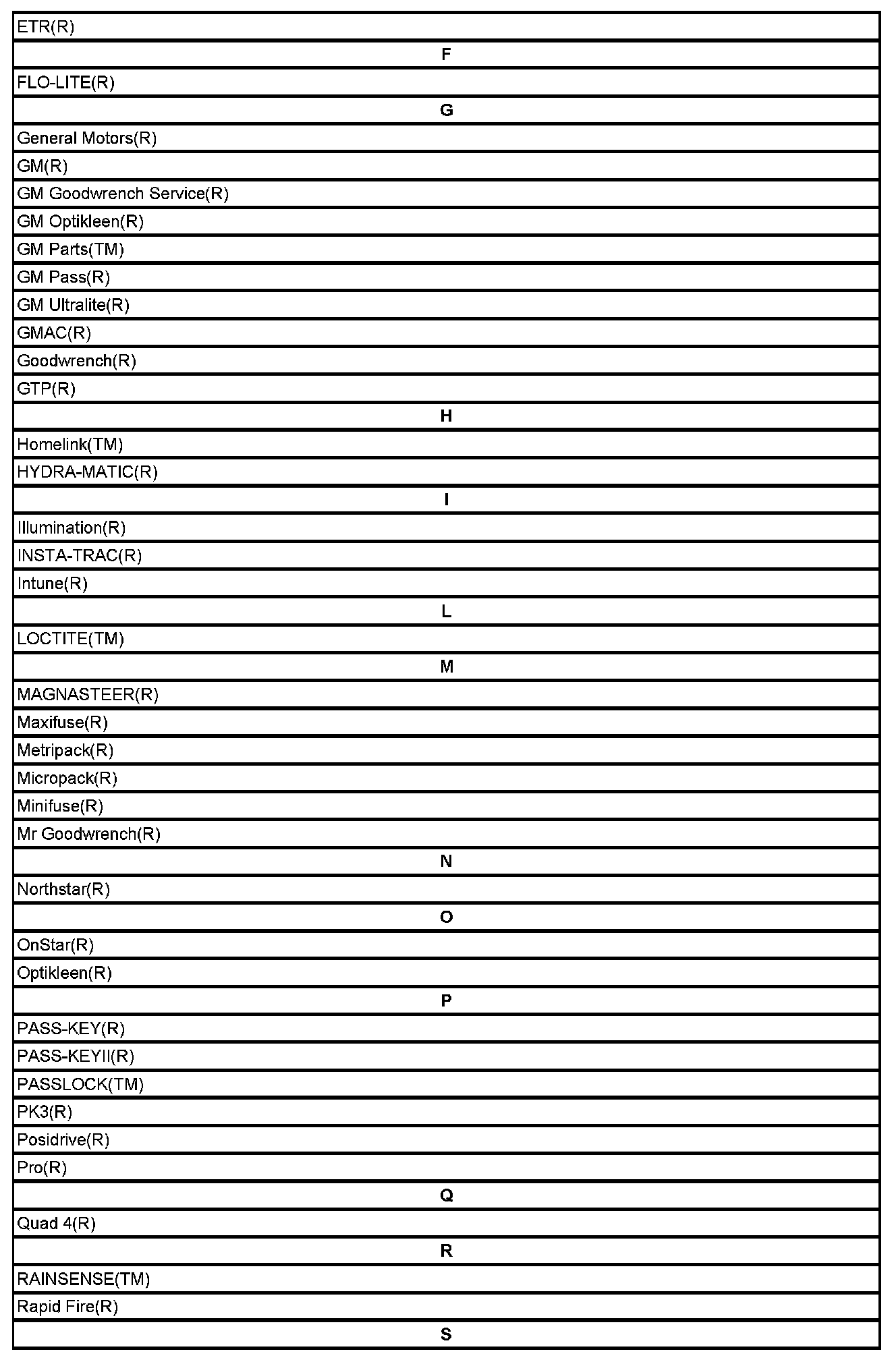 Listed below are Registered Trademarks ((R)) or Non-Registered Trademarks ((TM)) which may appear in this service data.
