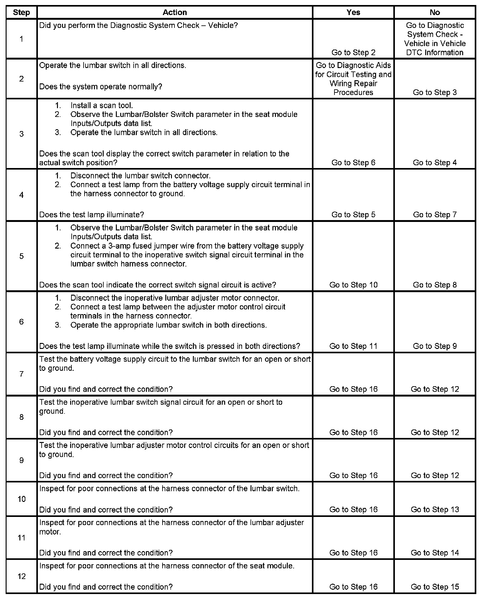 Lumbar Support Inoperative