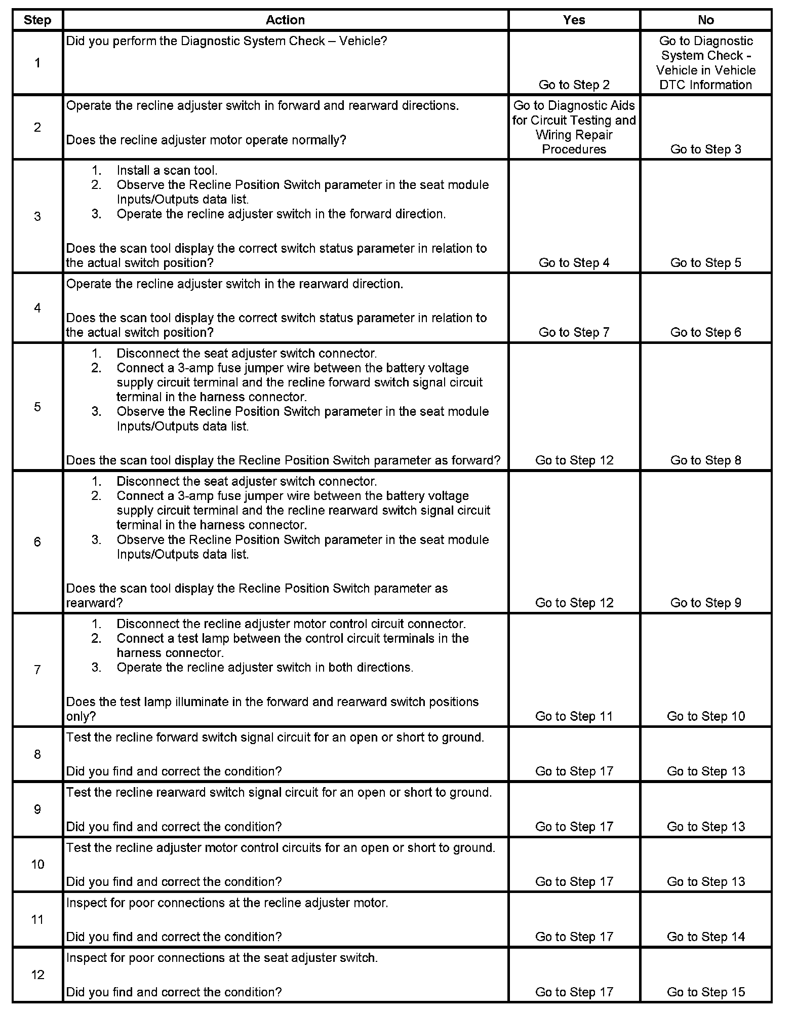 Power Seat Does Not Recline