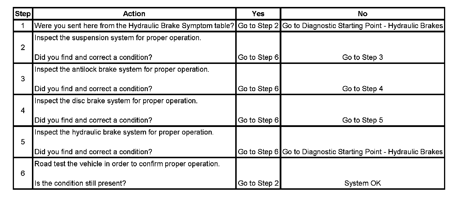 2. Suspension components that are not operating properly may cause a disturbance to the vehicle during application of the brake system.