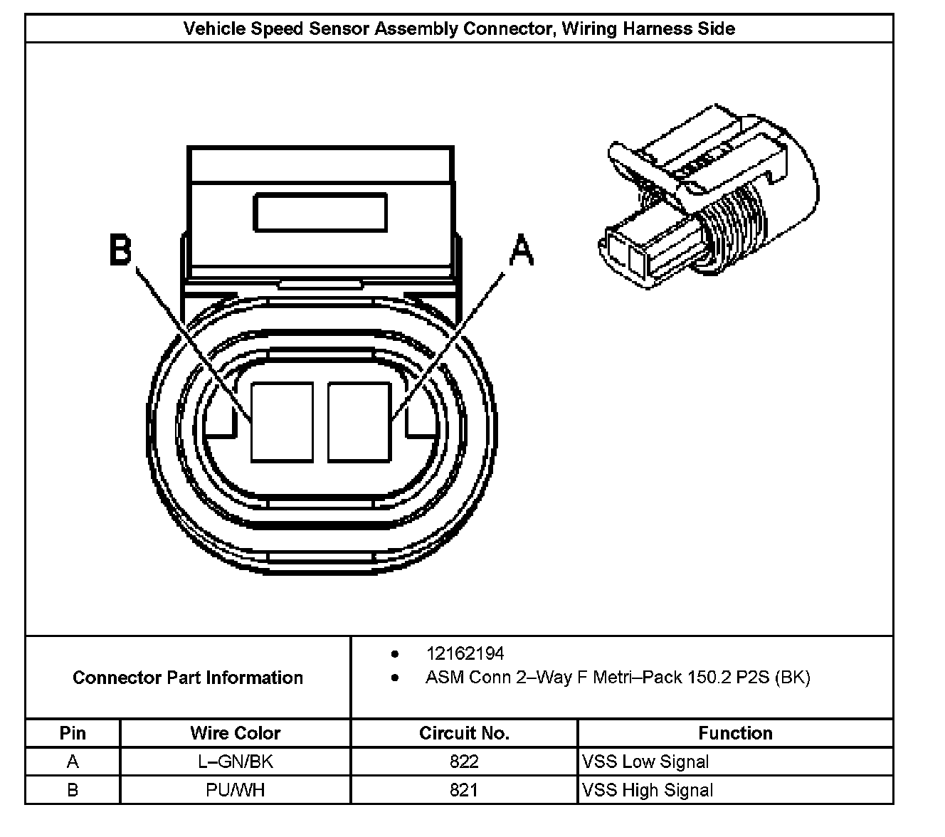 Vehicle Speed Sensor Assembly Connector, Wiring Harness Side: