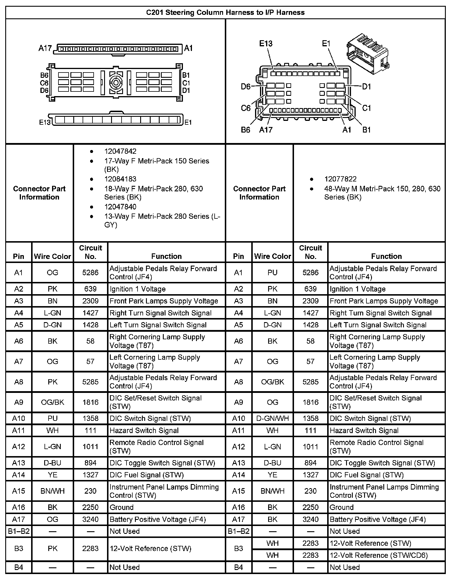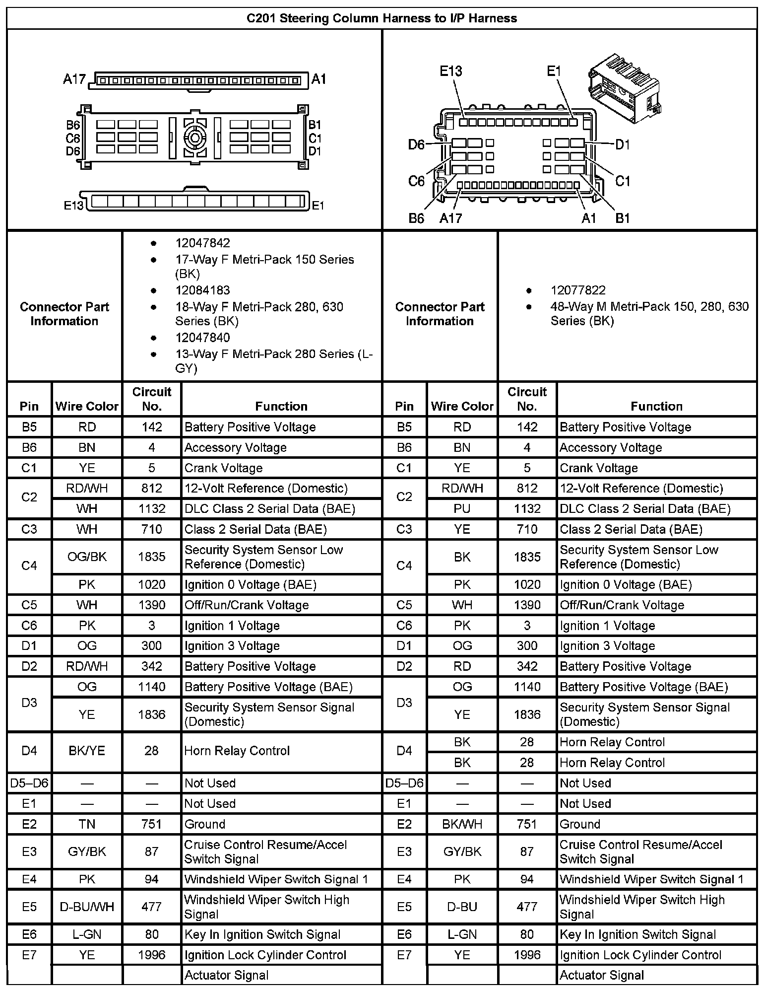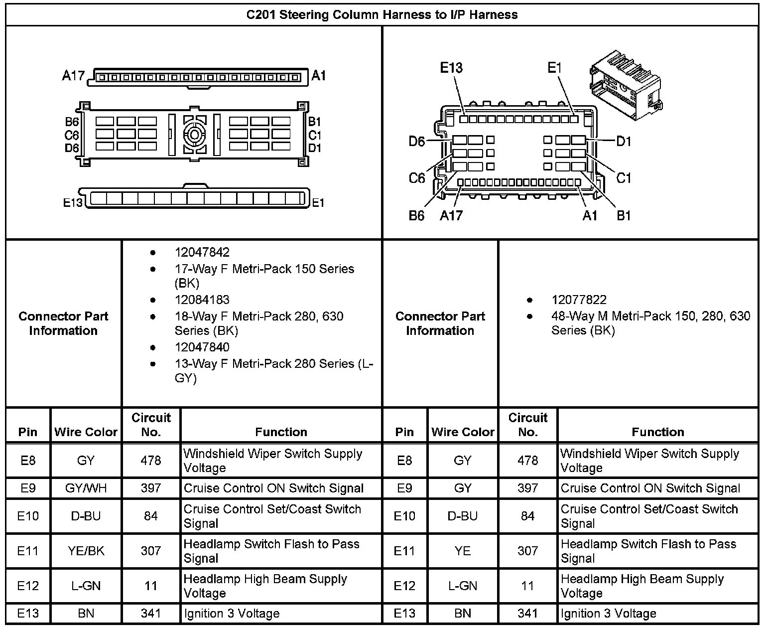 C201 Steering Column Harness To I/P Harness Part 1: