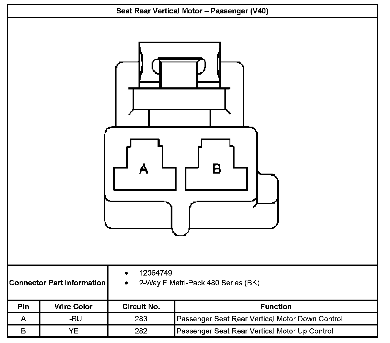 Seat Rear Vertical Motor - Passenger (With RPO Code V40):