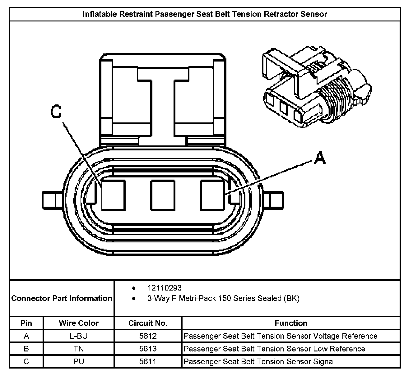 Inflatable Restraint Passenger Seat Belt Tension Retractor Sensor:
