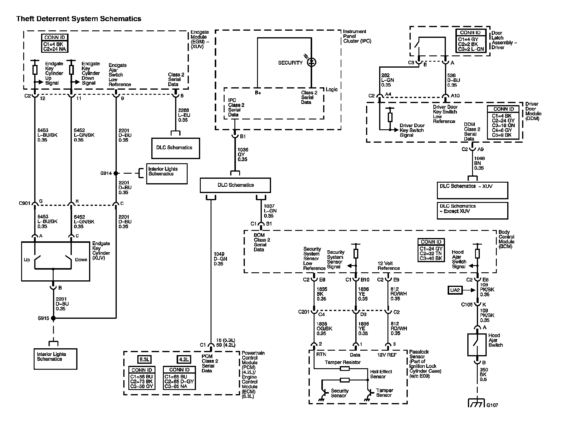 The locations for the Connectors, Grounds, Splices, and Grommets shown within these diagrams can be found via their numbers at Vehicle Locations.