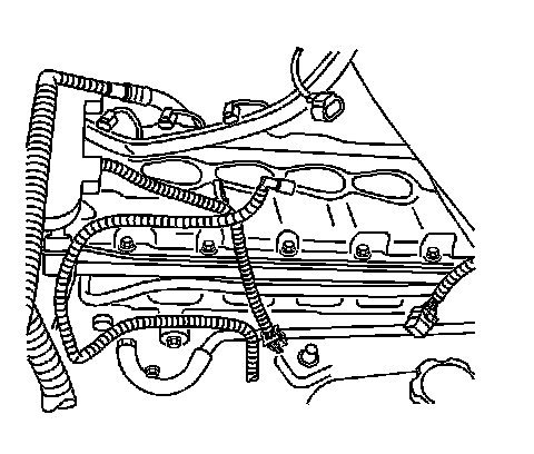 9. Disconnect the engine electrical harness housing from the camshaft cover (1) taking care not to damage the clips that hold the housing in place.