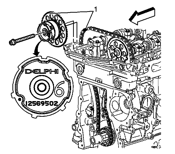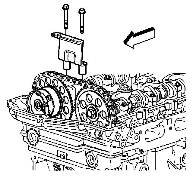 Notice: The camshaft actuator must be fully advanced during installation. Engine damage may occur if the camshaft actuator is not fully advanced.