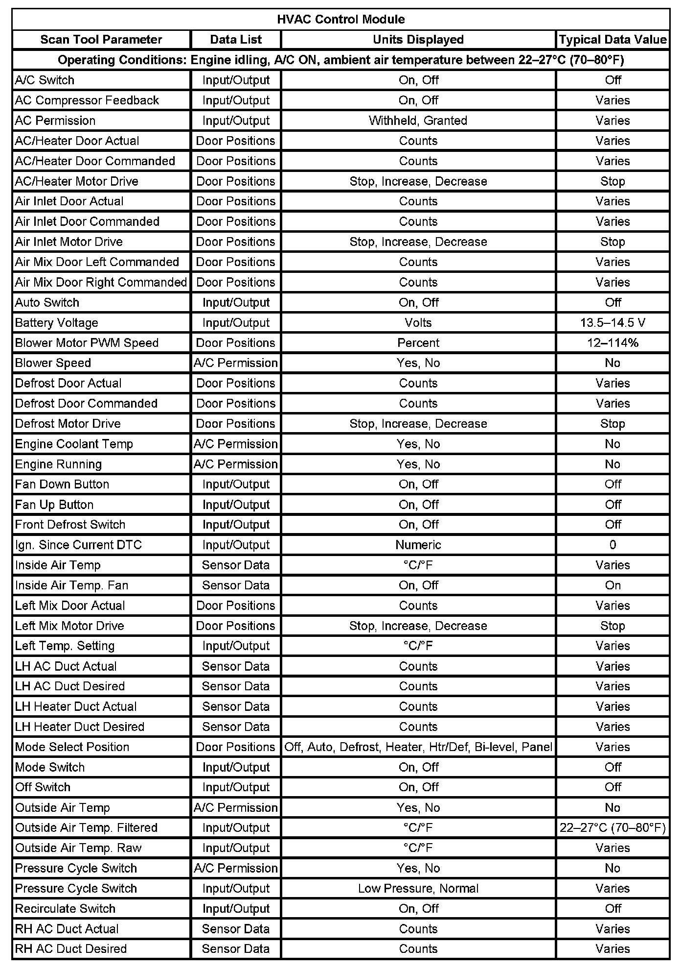 Scan Tool Testing - HVAC System - Automatic