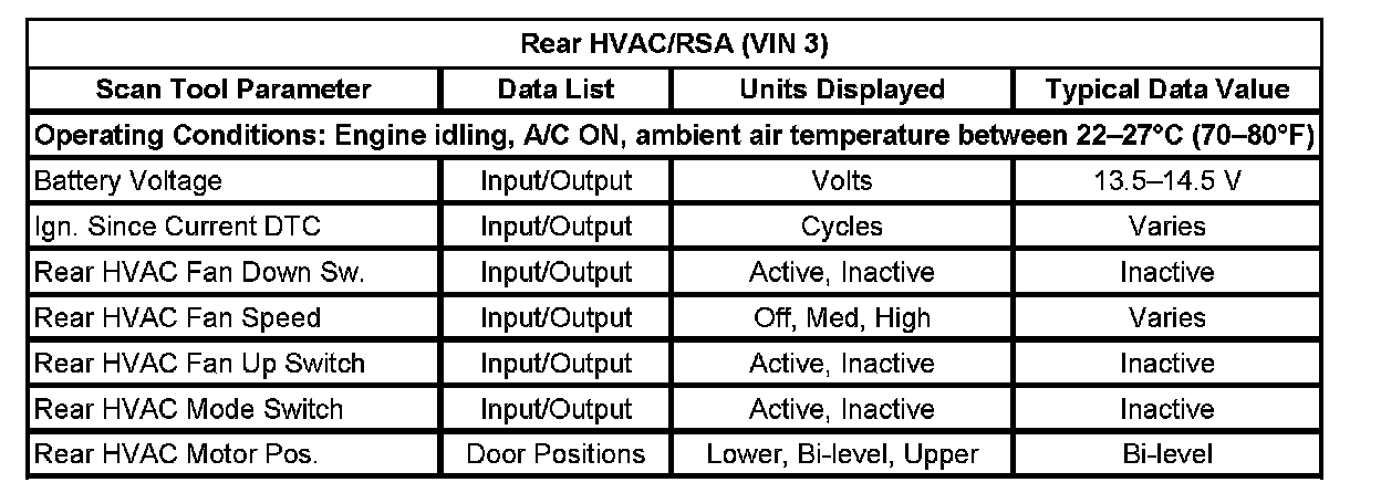 Rear HVAC/RSA (VIN 3):