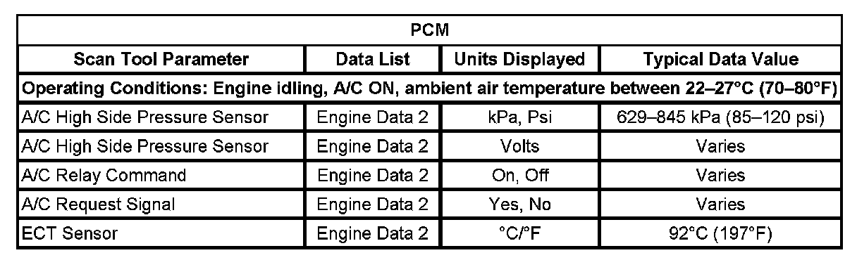 Scan Tool Normal Data Values