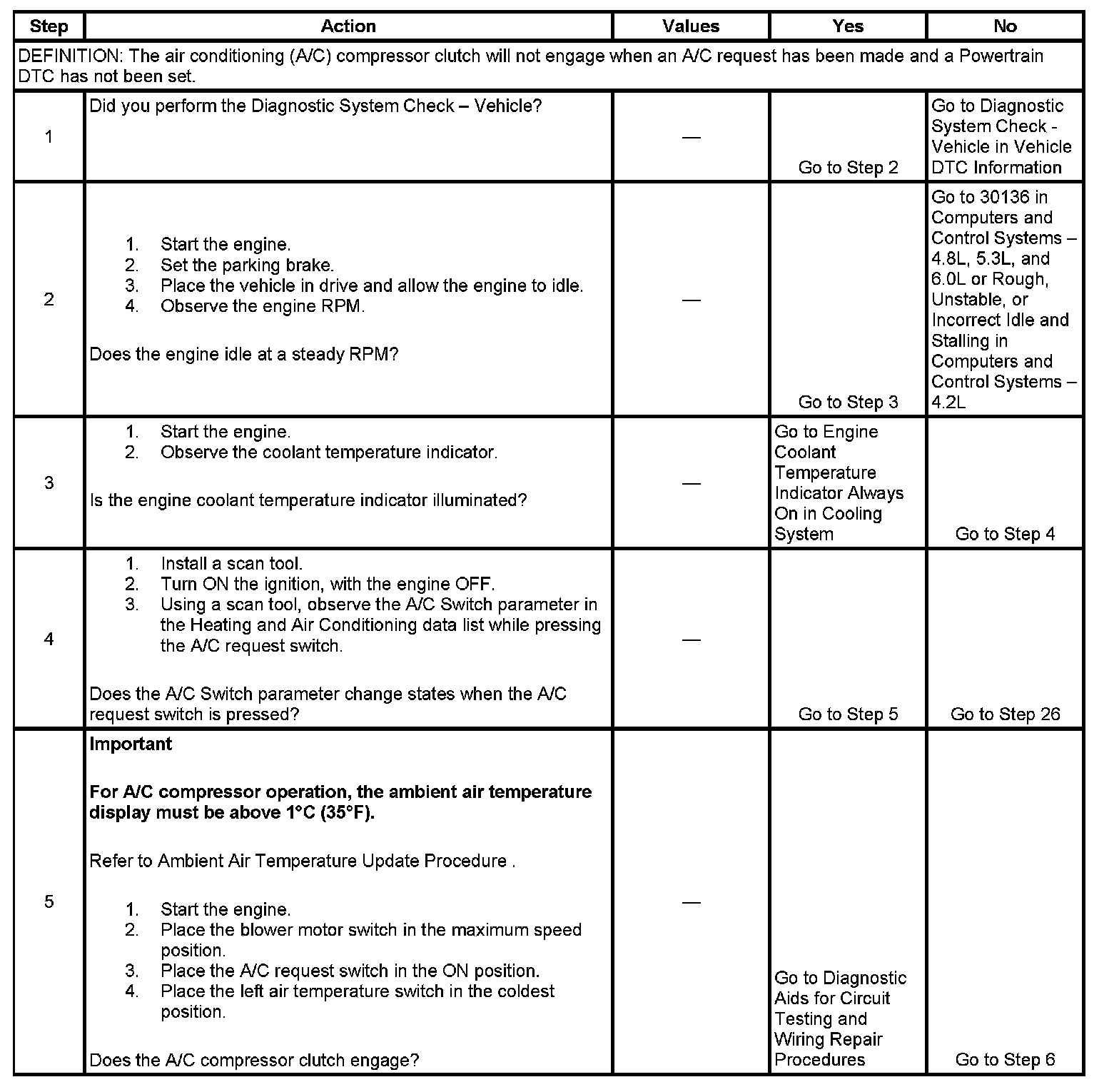 3. The A/C compressor relay output is disabled if engine coolant temperature is above 123 °C (253 °F). The engine coolant indicator will illuminate at this temperature.