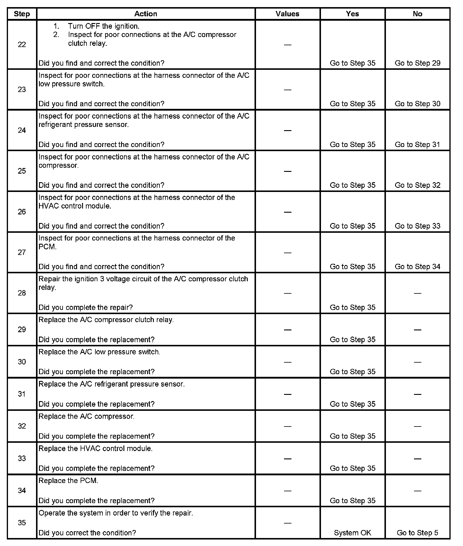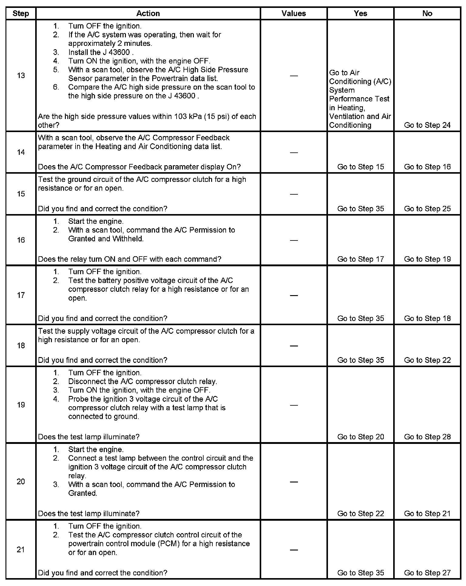 12. The A/C compressor relay output from the powertrain control module (PCM) is disabled if the A/C high side system pressure is interpreted to be higher than 2,413 kPa (350 psi).