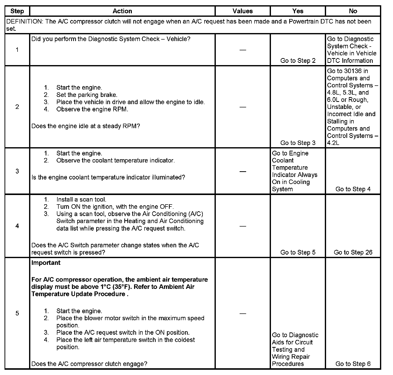 3. The A/C compressor relay output is disabled if ECT is above 123 °C (253 °F). The engine coolant indicator will illuminate at this temperature.