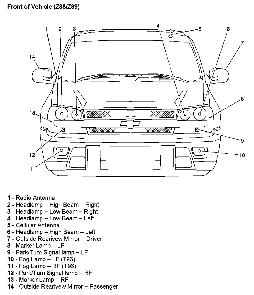 Front Of Vehicle (Z88/Z89):
