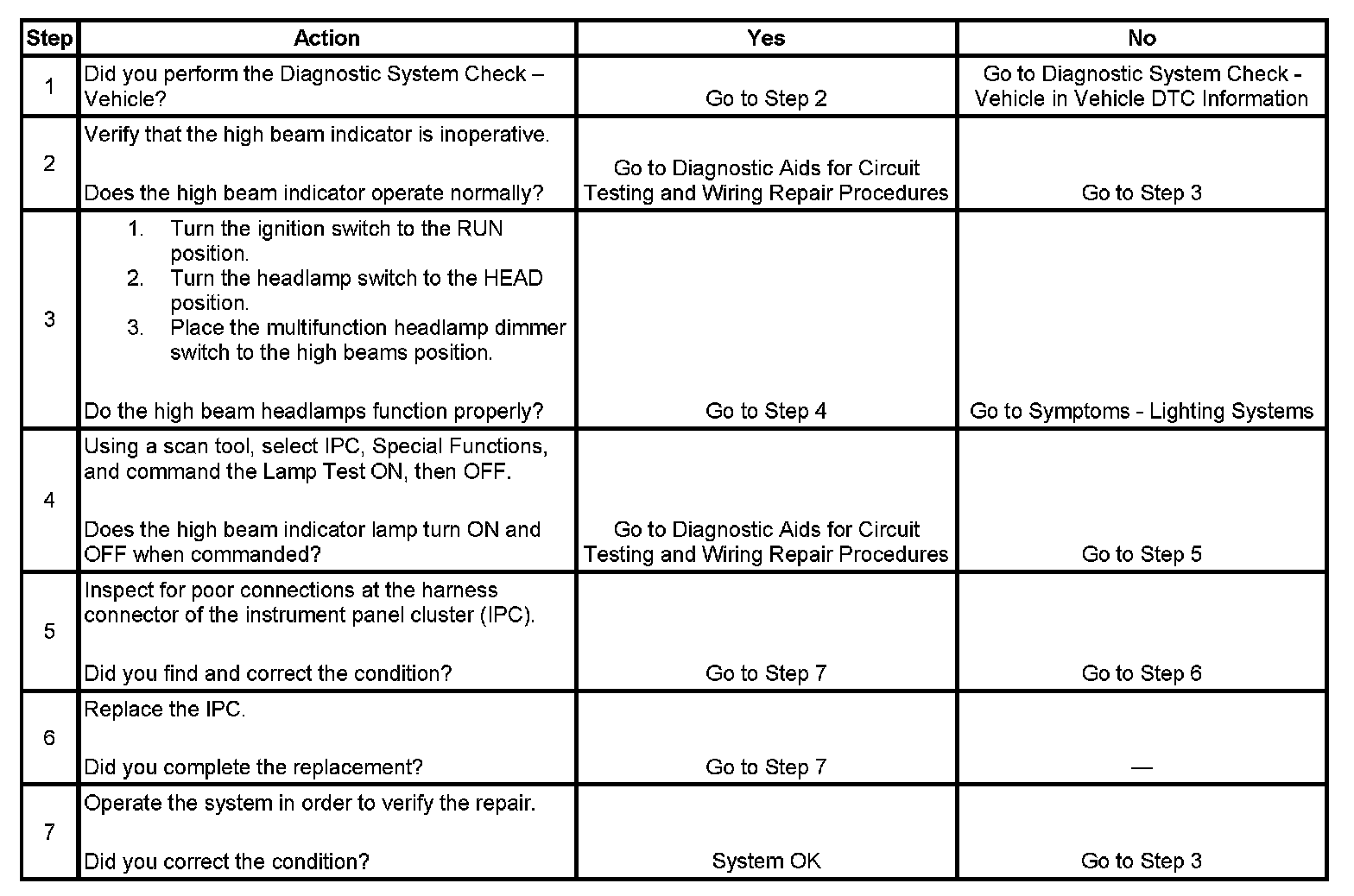 High Beam Indicator Inoperative