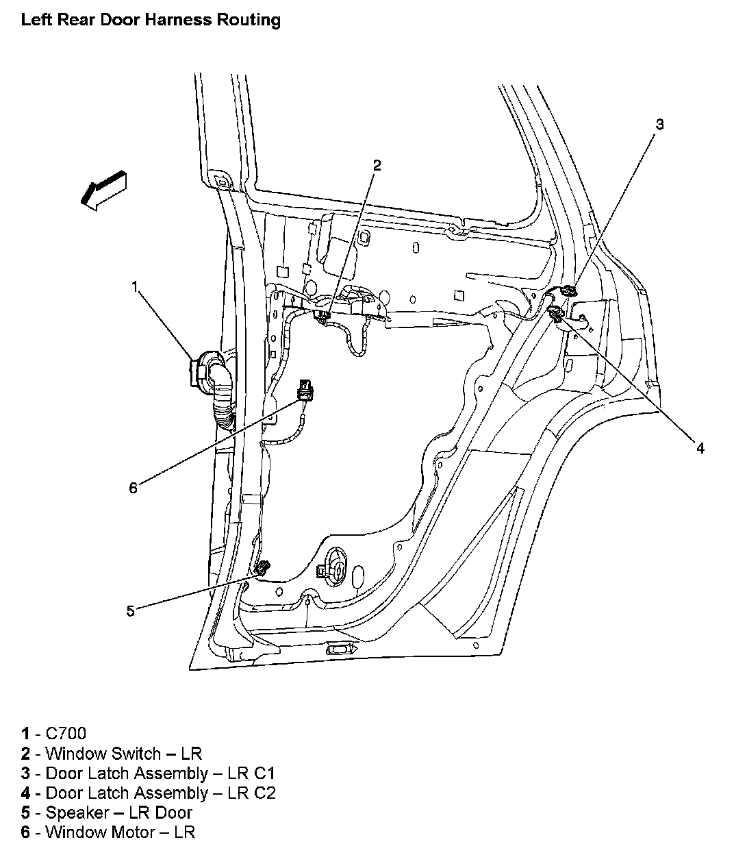 Left Rear Door Harness Routing: