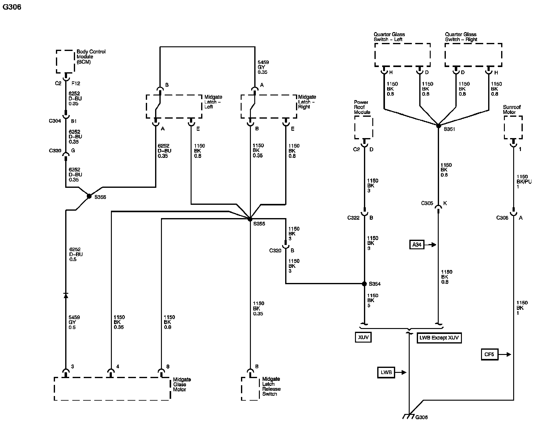 The locations for the Connectors, Grounds, Splices, and Grommets shown within these diagrams can be found via their numbers at Vehicle Locations.