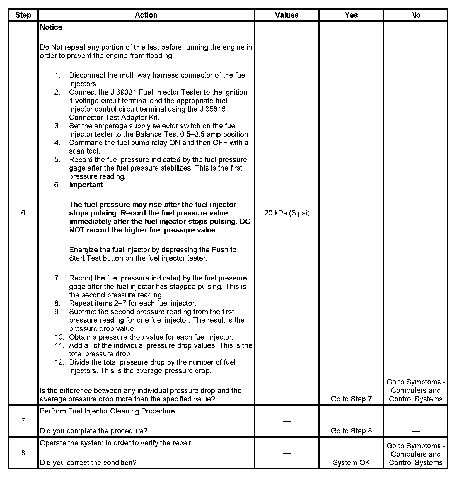 Fuel Injector Balance Test Example (Actual Results May Vary):
