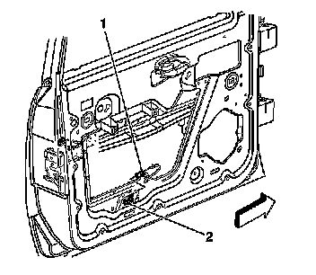 4. Remove the screws that retain the side impact sensor (2) to the door.