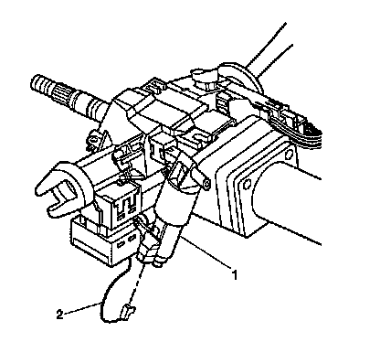 4. Pry the electric park lock (2) off of the ignition lock cylinder case assembly (1).