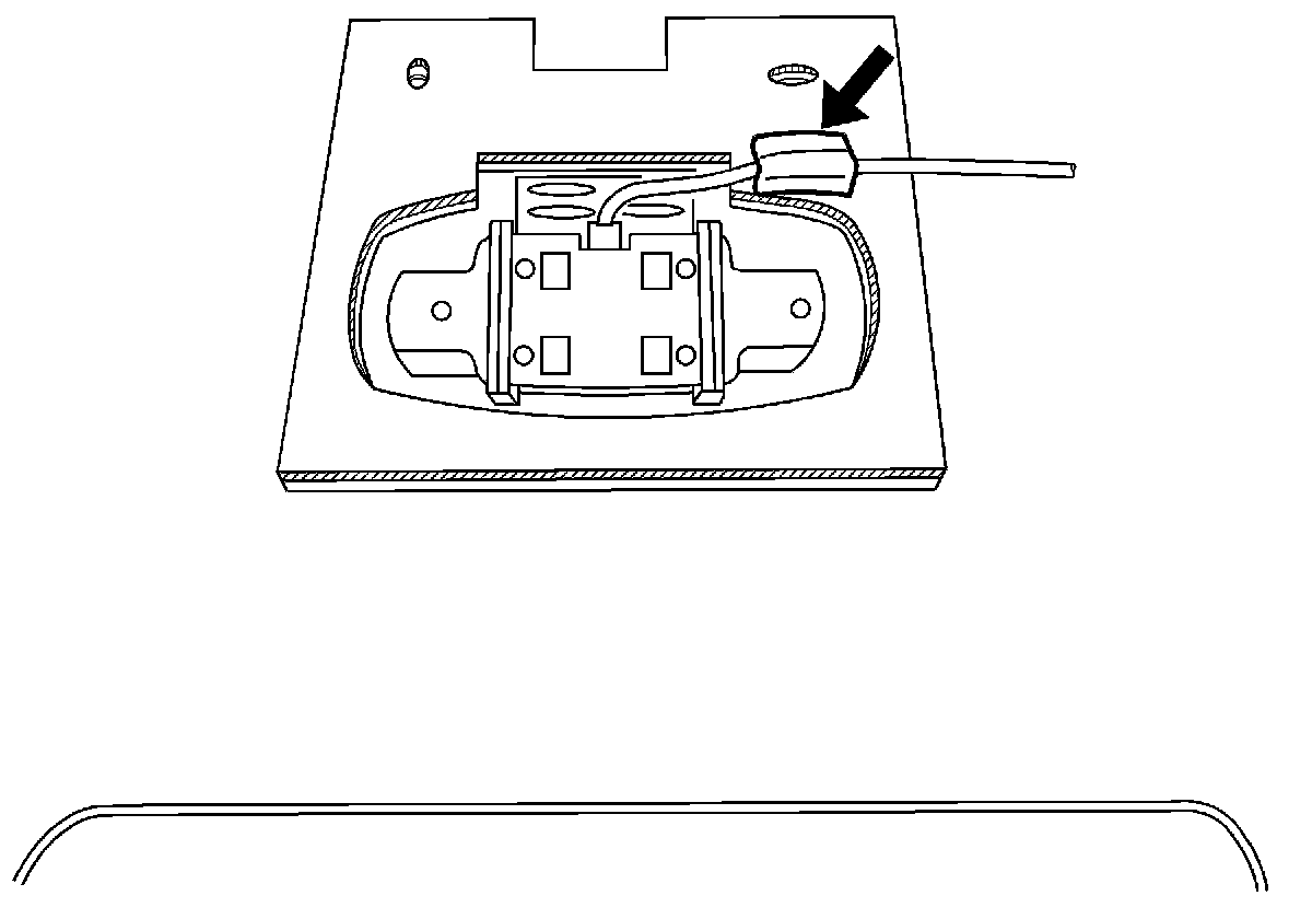 Pull the headliner down around the rear of the sunroof and install a piece of foam between the wiring harness and the roof. Refer to the arrow in the illustration above.
