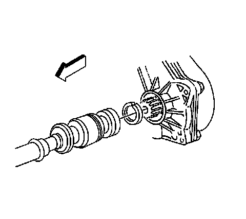 Important: Ensure that the propeller shaft assembly is fully engaged into the slip yoke. The retaining ring will produce a snapping noise when the shaft is properly engaged.